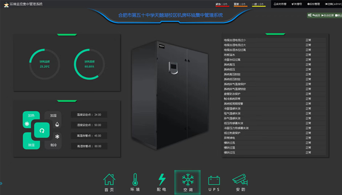 2、異常警報(bào):溫度和濕度異常、漏水、停電等情況。機(jī)房運(yùn)行過程中,系統(tǒng)會(huì)自動(dòng)報(bào)警并及時(shí)通知管理人員,避免更大的損失。