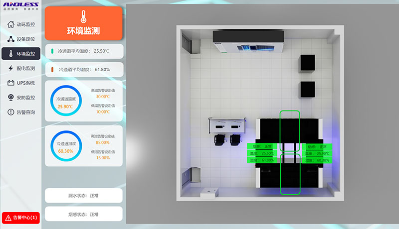 近期我司有幸為本項目設計了一套雙排冷通道系統(tǒng)。系統(tǒng)主要設備有:1套雙排冷通道封閉組件、9臺設備機柜、1臺60KVA模塊化主機(配置3個15KVA功率模塊)、64節(jié)12V 100Ah蓄電池、2套電池柜、配套動環(huán)檢測設備,以及安裝所需輔材等。所有設備已供貨完成,系統(tǒng)調試成功。