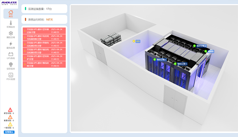 本次機(jī)房項(xiàng)目為其提供的為雙排微模塊機(jī)房設(shè)備,含有精密空調(diào)系統(tǒng)、動(dòng)力環(huán)境監(jiān)控系統(tǒng)、配電系統(tǒng)、機(jī)柜、聲光報(bào)警等系統(tǒng)。