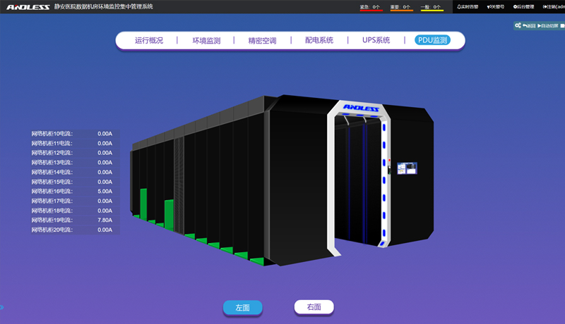 安徽靜安中西醫(yī)結合醫(yī)院使用安德力士微模塊封閉冷通道系統(tǒng)1套,制冷方式采用行間空調進行制冷,使用模塊化UPS電源系統(tǒng)為IT設備供電。
