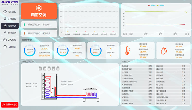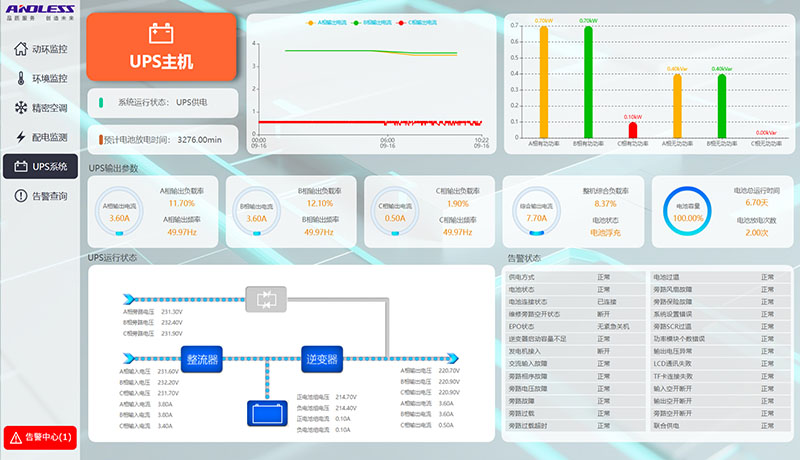 近期我司有幸為本項(xiàng)目設(shè)計(jì)了一套UPS不間斷電源系統(tǒng),系統(tǒng)內(nèi)設(shè)備包含:20KVA高頻UPS主機(jī)1臺(tái)、12V200AH蓄電池64節(jié)、配套電池柜2套、制冷量12.5KW精密空調(diào)1臺(tái)、配套動(dòng)環(huán)系統(tǒng),以及3臺(tái)服務(wù)器機(jī)柜。所有設(shè)備現(xiàn)均已供貨安裝完成,開(kāi)機(jī)調(diào)試成功。