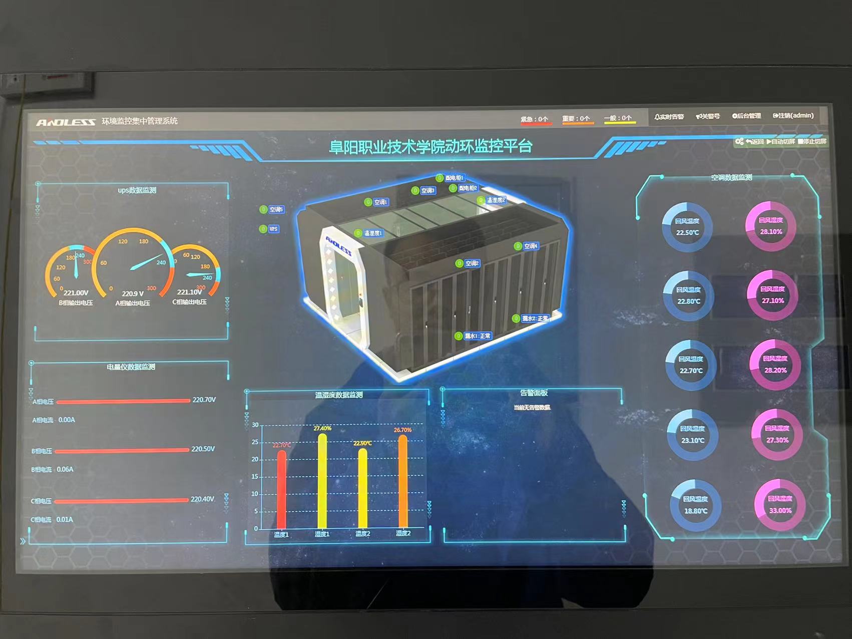 貴校使用我公司安德力士品牌GLM模塊化機(jī)房1套,配置模塊化GLS-160KVA UPS主機(jī)1套,房間級30KW精密空調(diào)1臺(tái)、40KW精密列間空調(diào)4臺(tái)、環(huán)境監(jiān)控集中管理系統(tǒng)1套。機(jī)房環(huán)境監(jiān)控是綜合機(jī)房整體分布環(huán)境的一個(gè)機(jī)房集中監(jiān)控系統(tǒng),是完整的室內(nèi)集中監(jiān)控系統(tǒng)。隨著信息技術(shù)的發(fā)展,計(jì)算機(jī)系統(tǒng)及通信設(shè)備數(shù)量與日俱增,規(guī)模也越來越大,中心機(jī)房、IDC等已成為各大單位業(yè)務(wù)管理的核心場所。為保證機(jī)房的安全正常工作,與之配套的動(dòng)力系統(tǒng)、環(huán)境系統(tǒng)、安防系統(tǒng)、消防系統(tǒng)必須時(shí)時(shí)刻刻穩(wěn)定協(xié)調(diào)運(yùn)行。如果機(jī)房動(dòng)力及環(huán)境設(shè)備出現(xiàn)故障,輕則導(dǎo)致計(jì)算機(jī)宕機(jī),重則導(dǎo)致數(shù)據(jù)丟失等嚴(yán)重后果。因此,一套可對機(jī)房進(jìn)行7x24小時(shí)實(shí)時(shí)監(jiān)控的系統(tǒng)非常重要。機(jī)房監(jiān)控是針對機(jī)房動(dòng)力和環(huán)境的集中監(jiān)控管理,其監(jiān)控對象主要是機(jī)房動(dòng)力和環(huán)境等設(shè)備(如:配電、UPS、空調(diào)、溫濕度、漏水、門禁、安防、消防、防雷等)。微模塊一體化集成機(jī)柜系統(tǒng)、供配電系統(tǒng)、制冷系統(tǒng)、監(jiān)控系統(tǒng)和綜合布線系統(tǒng)等,微模塊具備一體化集成、安全可靠、低噪音、節(jié)省機(jī)房占地面積和節(jié)約能源、安裝省時(shí)、省力、省心、架構(gòu)兼容、快速靈活部署、多種電源制式和完善的監(jiān)控等特點(diǎn),是新一代數(shù)據(jù)中心產(chǎn)品。GLS系列模塊化UPS電源擁有卓越的負(fù)載適應(yīng)性能,對于各種類型的線性與非線性負(fù)載,均能提供強(qiáng)大的帶載能力。每個(gè)功率模塊以及機(jī)柜系統(tǒng),均能提供媲美任何塔式機(jī)型的帶載能力,從而保證了此系列產(chǎn)品在各行業(yè)的應(yīng)用范圍。系統(tǒng)中每個(gè)功率模塊均設(shè)計(jì)為可在線熱插拔,方便用戶安裝、維護(hù)以及升級擴(kuò)容等需求。每個(gè)功率模塊均為自主控制,無單點(diǎn)故障風(fēng)險(xiǎn)。單個(gè)功率模塊在出現(xiàn)故障的情況下將自動(dòng)退出,不影響其他模塊的工作以及系統(tǒng)的正常供電。GLS系列產(chǎn)品采用人性化的建議操作設(shè)計(jì)方案,用戶可以簡單明了地操作以及管理UPS系統(tǒng)。